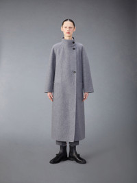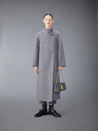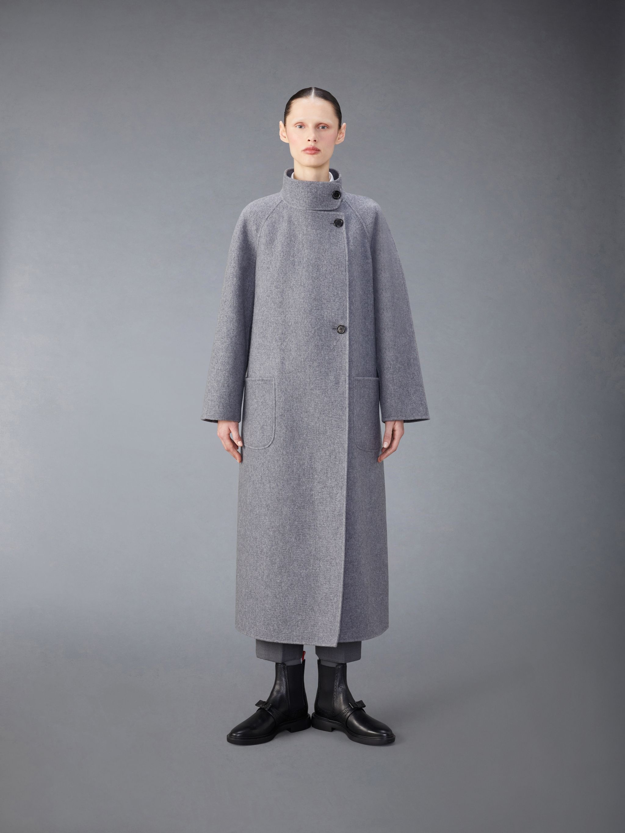 DETAILS & FIT The pinnacle of cold weather sophistication. Crafted using only the finest fabrics, our Wool Cashmere Funnel Neck Coat will provide ultimate warmth all season long. Front button closure 2 Patch pockets Interior pocket with name tag Signature striped grosgrain loop tab Model is 5'10" (178 cm), wearing size 40 90% Wool, 10% Cashmere Made in Italy FOC857S-F0656-035