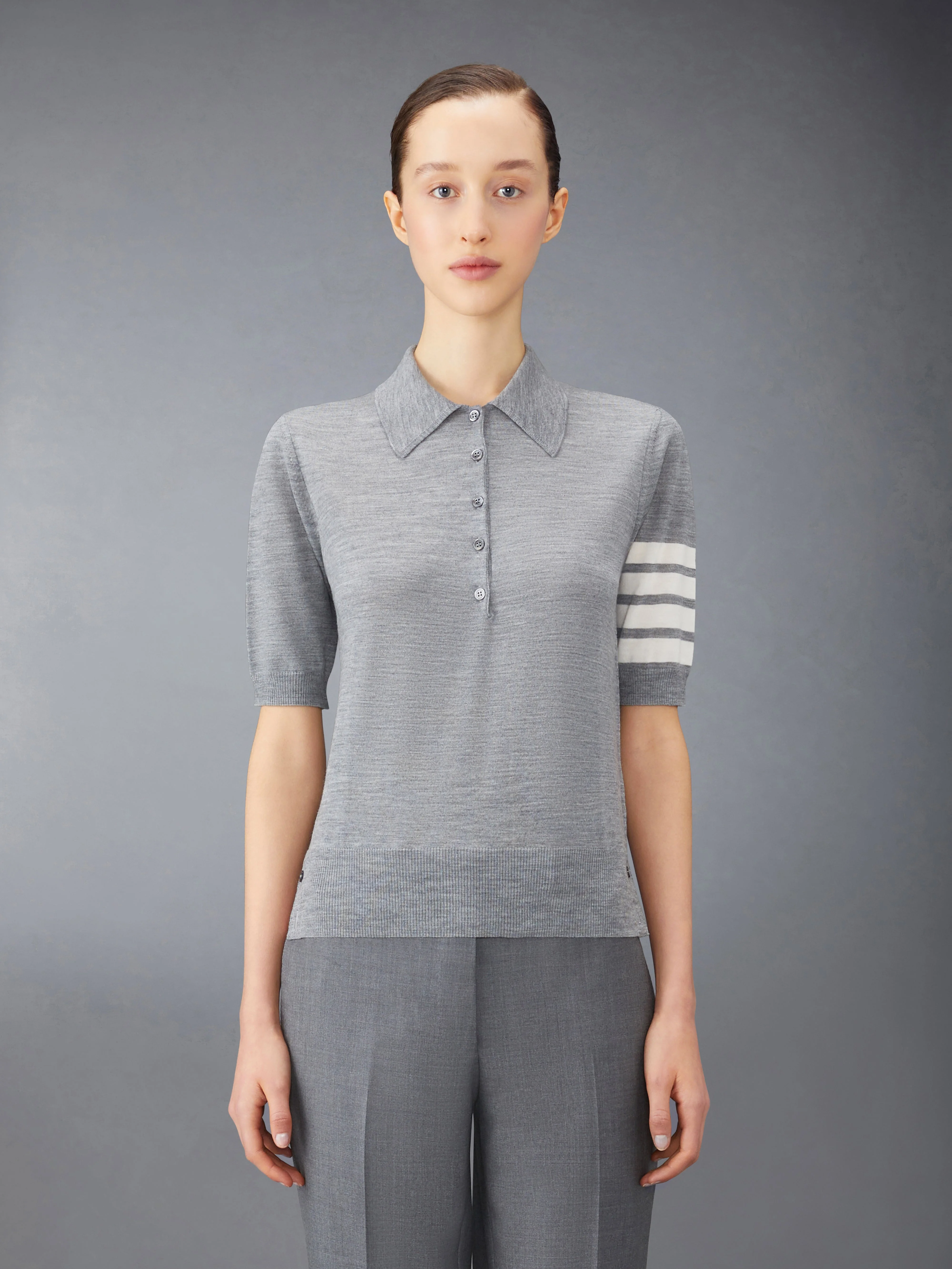 DETAILS & FIT Inspired by East Coast preppy icons but reimagined with inventive proportions and quality craftsmanship, our Wool 4-Bar Relaxed Polois a sophisticated take on a classic silhouette. Partial button placket Spread polo collar Buttoned side vents with signature striped grosgrain trim Signature striped grosgrain loop tab at back of neck Model is 5' 10" (178cm), wearing size 40 100% Virgin Wool Made in Italy FKP053A-Y1014-055