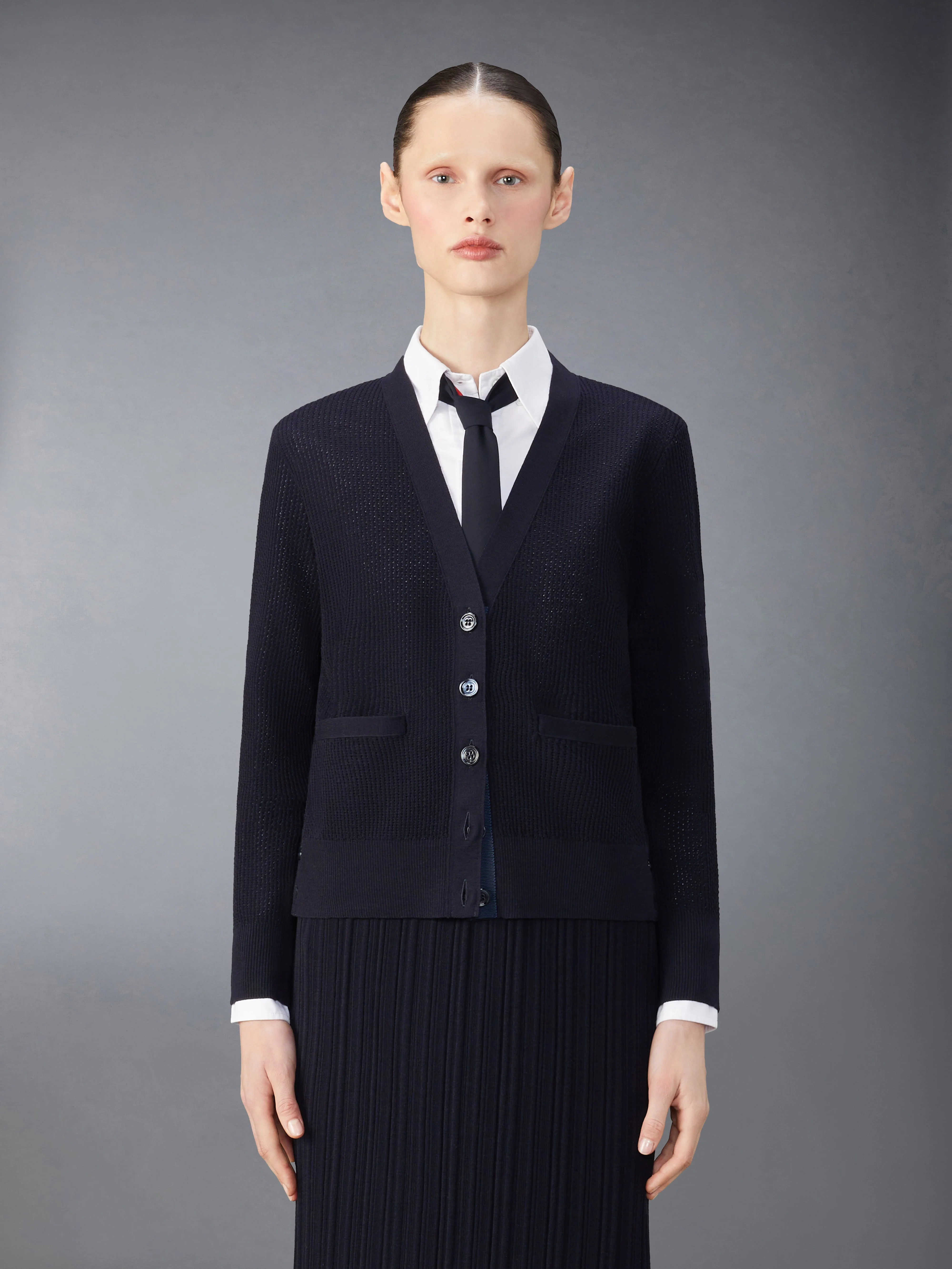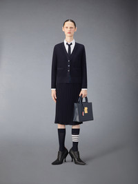Wool Crepe 4-Bar Relaxed Fit Cardigan