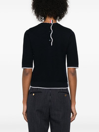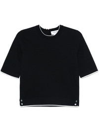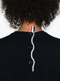 textured wool T-shirt Highlights - Navy blue - Rear button fastening - Crew neck - Short sleeves - Signature grosgrain loop tab Made in Italy Composition Virgin Wool 100% Washing instructions Dry Clean Only