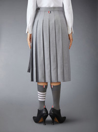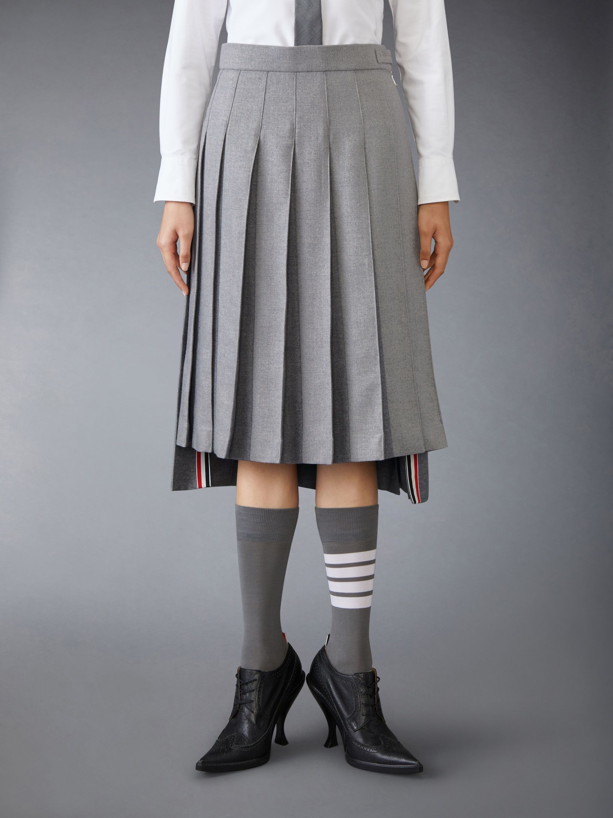DETAILS & FIT A classic silhouette that will stand the test of time, our Wool Flannel Pleated Skirt. Crafted with cozy wool flannel fabric, this versatile piece can be styled with any of our signature sweaters or sport coats. Side zip closure Signature striped grosgrain loop tab Model is 5'10" (178 cm), wearing size 40 100% Wool Lining: 100% Cupro Made in Italy FGC441A-F0580-065