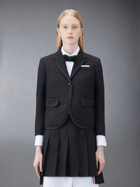 DETAILS & FIT Our Wool Fresco Slim Fit Sport Coat embraces a slimmer fit taken from punk influences, while remaining true to Thom Browne’s classic heritage. Pair with our Fresco Pleated Mini Skirt. Button front closure Notched lapels Double vented back Striped lining with Interior pocket and name tag Signature striped grosgrain loop tab at back of neck Model is 5' 10" (178cm), wearing size 40 100% Wool Lining: 100% Cupro Made in Italy FBC010I-00473-001