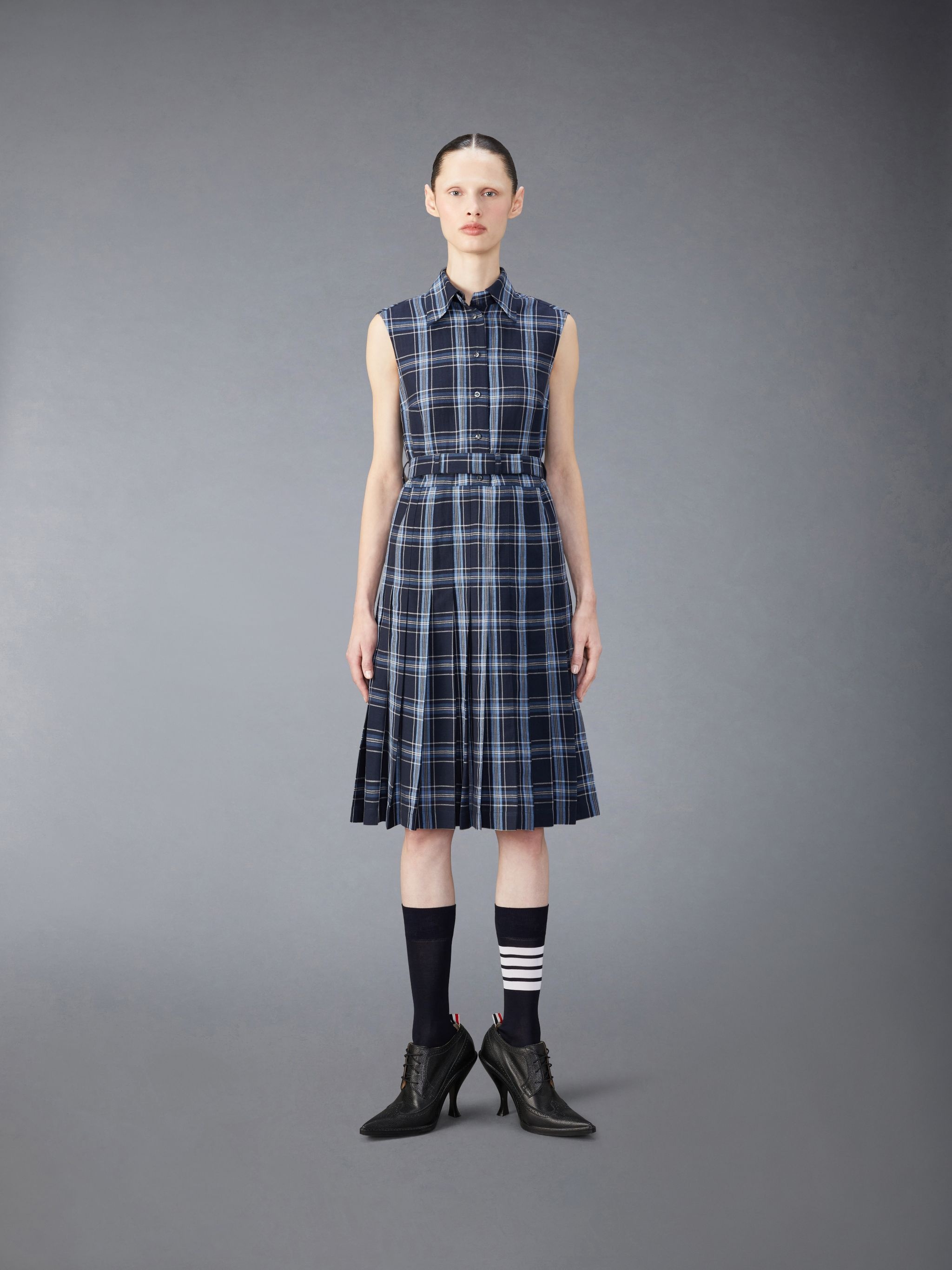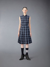 DETAILS & FIT Inspired by East Coast preppy icons, our Wool Linen Belted Dress is our seasonal take on a timeless silhouette. Front button closure Belted waist Pleated back yoke with locker loop Signature striped grosgrain loop tab Model is 5'10" (178 cm), wearing size 40 52% Virgin Wool, 48% Linen Lining: 100% Silk FDS704A-F0647-410