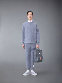 DETAILS & FIT Oversized crew neck sweatshirt in grey wool loopback with tonal 4-bar stripe detail at left sleeve. V-patch at neck, name tag applique above hem. Ribbed neckline and cuffs. Buttoned side vents with signature striped grosgrain trim. Signature striped grosgrain loop tab at back of neck. Model is 5'10" (178 cm), wearing size 40 100% Virgin Wool Combo 2: 97% Wool, 3% Elastane Made in Italy FJT271AJ0088055