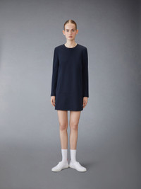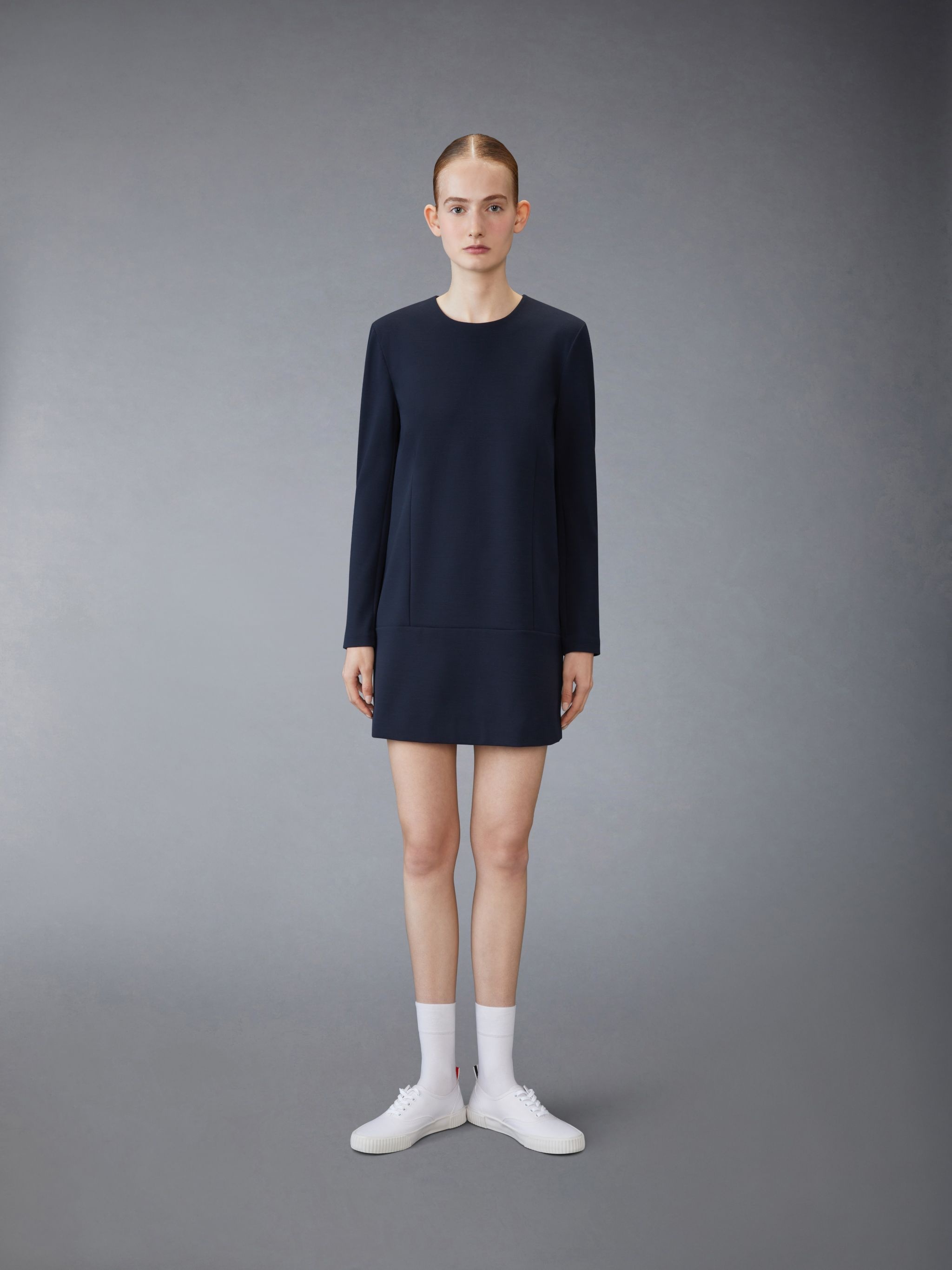 DETAILS & FIT Simple, elegant, and refined, our Wool Tech Milano Mini Shift Dress will be a staple in your wardrobe for years to come. Back button closure Buttoned cuffs with signature striped grosgrain trim Signature striped grosgrain loop tab Model is 5'10" (178 cm), wearing size 40 100% Cotton Made in Italy FJD125A-07746-415