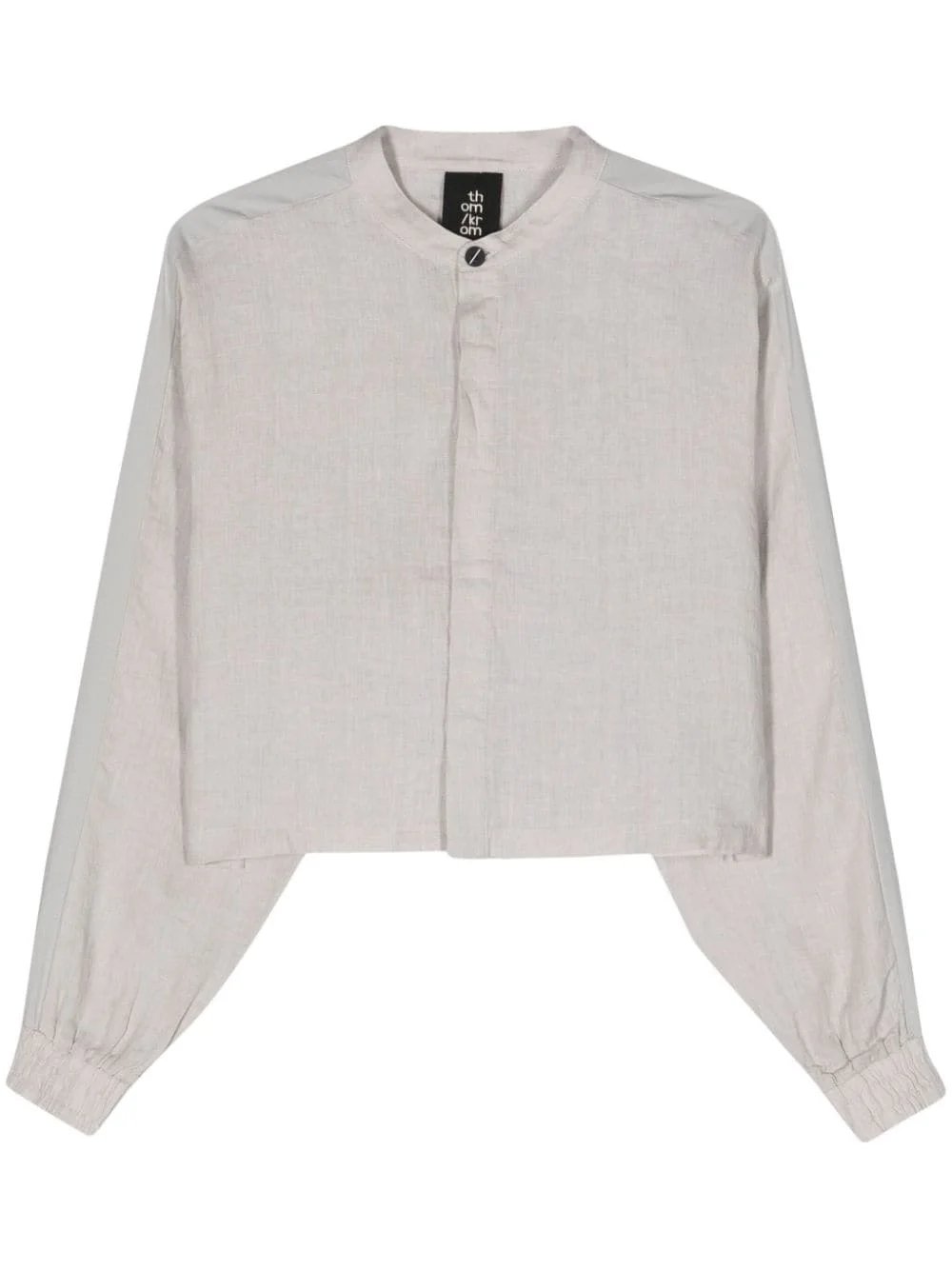 cropped linen shirt Highlights - Light grey - Linen/flax - Band collar - Concealed front button fastening - Drop shoulder - Long sleeves - Elasticated cuffs - Straight hem - Cropped Imported Composition Linen/Flax 100%, Cotton 60%, Polyamide 35%, Spandex/Elastane 5%