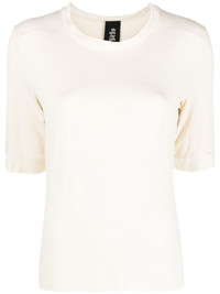 decorative-stitching T-shirt Highlights - Ivory white - Stretch-design - Decorative stitching - Round neck - Short sleeves Imported Composition Viscose 95%, Spandex/Elastane 5% SIZE & FIT Model measurements Height 5 ft 11 in(1.8 m) Bust/Chest 31.49 in(80 cm) Hips 36.61 in(93 cm) Waist 24.4 in(62 cm) FittingInformation This piece fits true to size. We recommend you get your regular size Cut for a slim fit Made with a lightweight stretch fabric