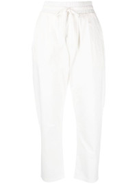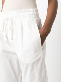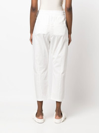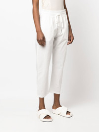 drawstring cropped trousers off-white jersey knit tapered leg cropped leg drawstring fastening two rear pouch pockets two side slit pockets Imported Composition Cotton 97%, Elastane 3% SIZE & FIT Model measurements Height 5 ft 11 in(1.8 m) Bust/Chest 31.49 in(80 cm) Hips 36.61 in(93 cm) Waist 24.4 in(62 cm) FittingInformation This piece fits true to size. We recommend you get your regular size Designed to be fitted at the waist and hips, loose over the leg Made with a mid-weight non-stretch fabric