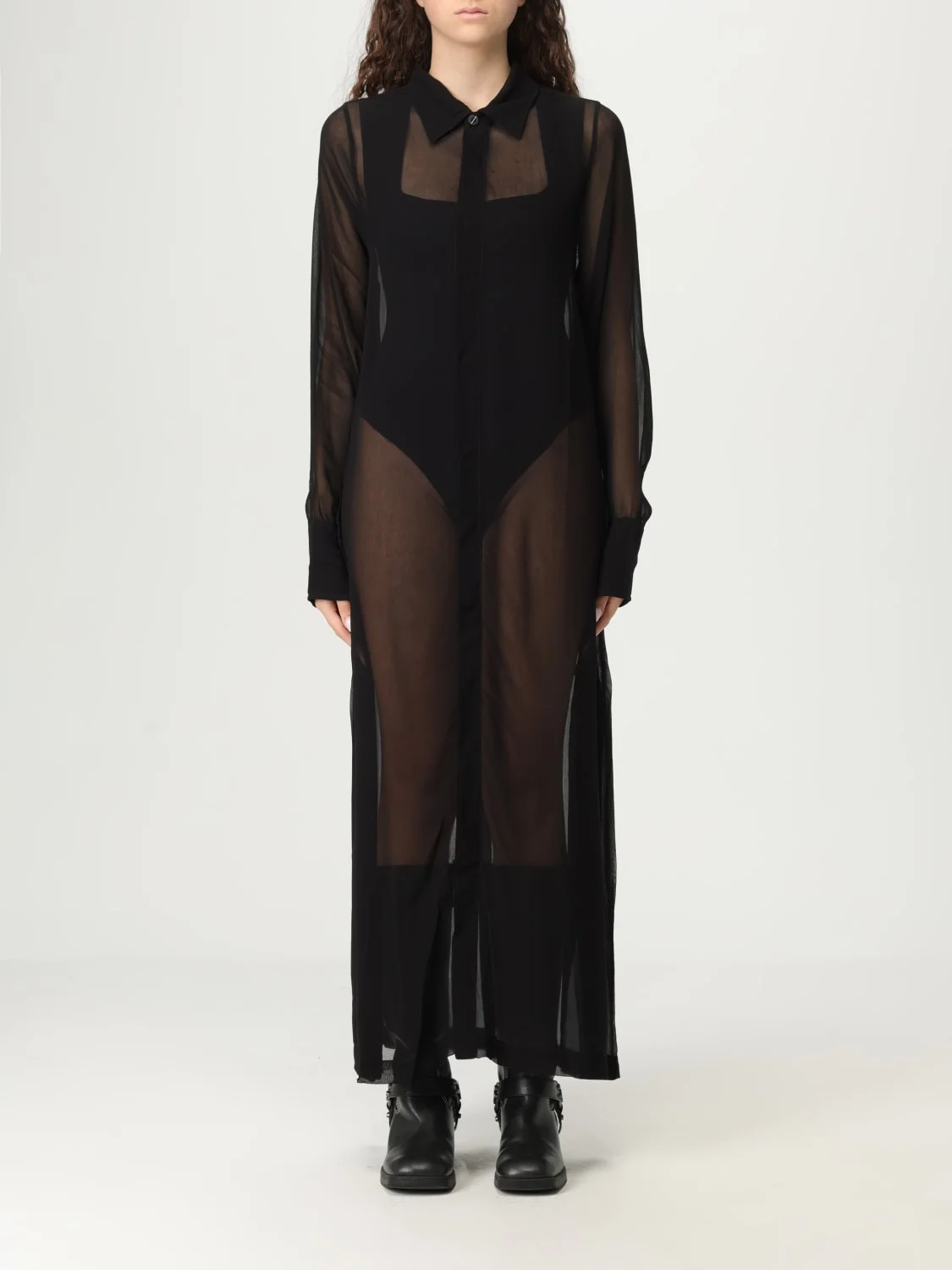 DESCRIPTION - Style: Contemporary - Model: Chemisier - Neck: Classic - Shoulders: Regular - Closure: Concealed buttons - Bottom: With straight hemline - Length: Long dresses - Occasion: Evening and party dresses - Sleeves: Long sleeve dresses - Materials: Rayon - Pattern: Plain-colored DETAILS AND CARE Composition 100% Rayon SIZE AND FIT Sizes not available Size and fit Regular fit Designer code: WD39 BLACK Giglio Code: G59291 Designer: Thom Krom Collection: Thom Krom Woman Category: Clothing Thom Krom