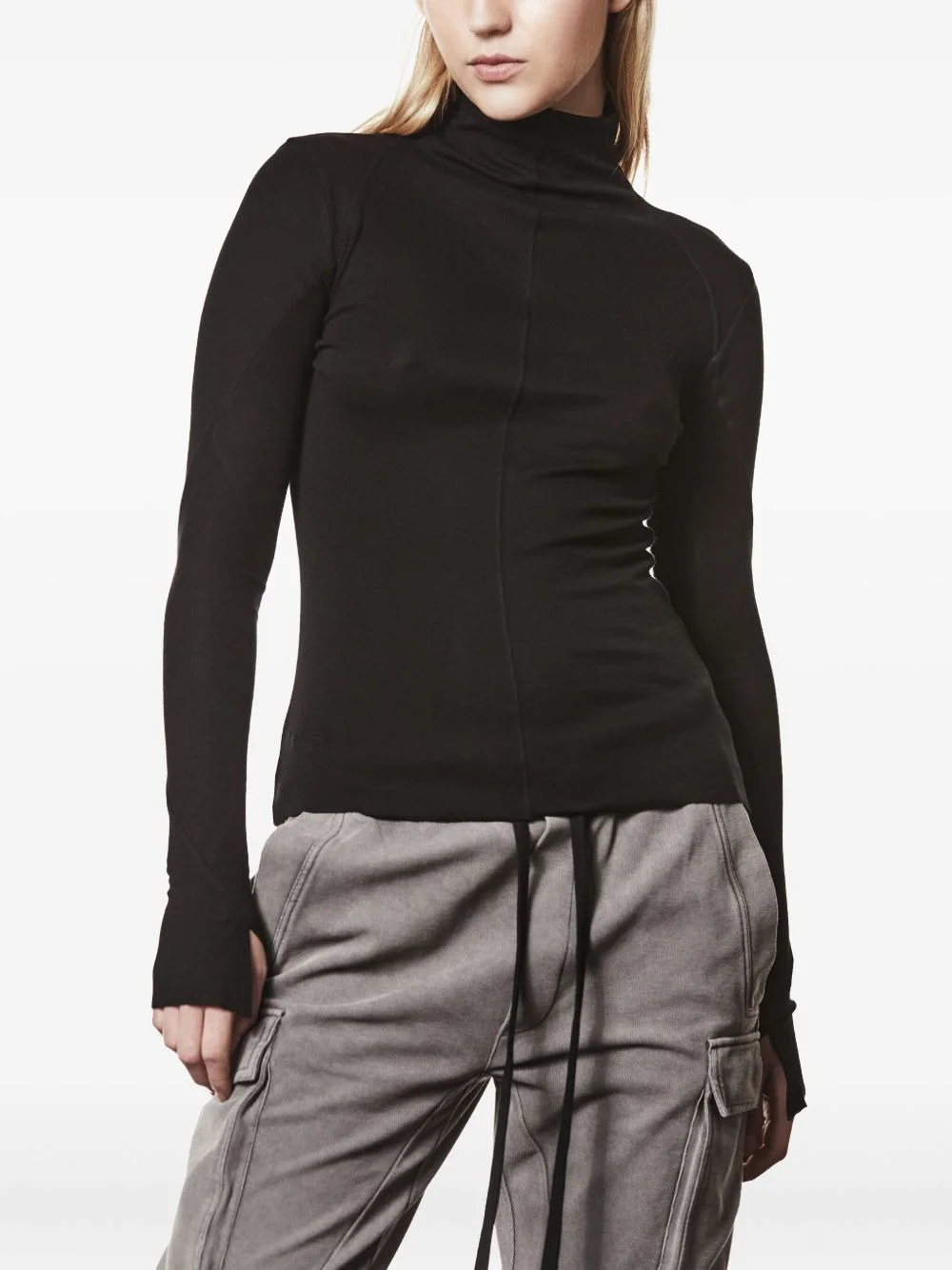 high-neck long-sleeve T-shirt Highlights - Black - High neck - Long sleeves - Thumbholes - Central seam detail Imported Composition Viscose 95%, Elastane 5% Washing instructions Read Manufacturer Guidelines