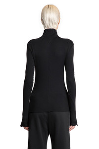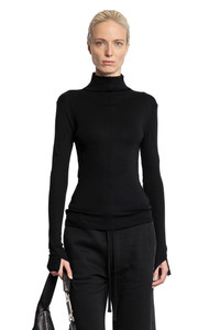 DESCRIPTION - Black - Lightweight stretch viscose jersey - Turtleneck - Signature crossed seams - Dropped shoulders - Long sleeves - Cuff splits - Back signature graphic embroidery - Raw-edge hem and cuffs - Fitted DETAILS - Made in: Turkey - Composition: 95% Viscose 5% Elastane - Model code: WTS589 BLACK - Item ID: 9720457429334 SIZE & FIT Model wears size S Model Height 180 cm Bust 80 cm Waist 59 cm Hips 89 cm