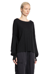 DESCRIPTION - Black - Lightweight cotton wool jersey - Round neck - Dropped shoulders - Long sleeves - Ribbed cuffs with hand gaiters - Back ''The night is my Friend embroidery'' with - loose threads - Loose boxy fit DETAILS - Made in: Turkey - Composition: 80% Cotton 20% Wool - Model code: WTS592 BLACK - Item ID: 9720458084694 SIZE & FIT Model wears size S Model Height 180 cm Bust 80 cm Waist 59 cm Hips 89 cm