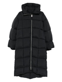 quilted zip-front coat Highlights - Black - Quilted design - Zip fastening - High collar - Long sleeves - Curved hemline Imported Composition Polyester 100%, Nylon 100% Washing instructions Read Manufacturer Guidelines
