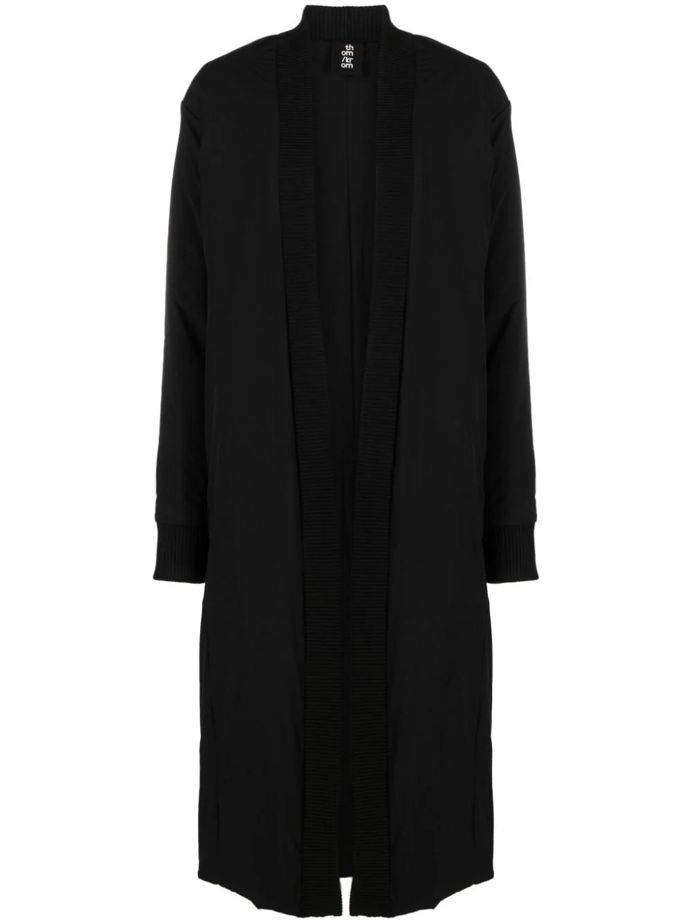 rear-slit single-breasted padded coat Highlights - Black - Padded design - Rear slit - Open front - Long sleeves - Ankle-length - Straight hem Imported Composition Nylon 88%, Spandex/Elastane 12% SIZE & FIT Model measurements Height 5 ft 9 in(1.76 m) Bust/Chest 33.07 in(84 cm) Hips 38.58 in(98 cm) Waist 24.8 in(63 cm) FittingInformation Designed to be unstructured, offering a loose fit throughout Made from a midweight stretch fabric, this piece offers elasticity and flexibility when worn This piece fits true to size – take your usual size Washing instructions Hand Wash