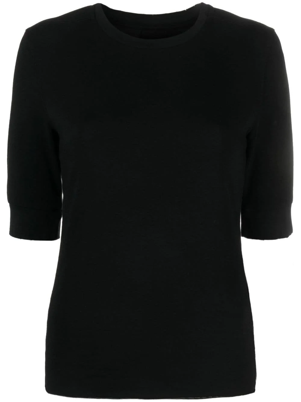 round-neck stretch T-shirt Highlights - Jet black - Stretch-design - Round neck - Short sleeves - Straight hem Imported Composition Modal 47%, Cotton 47%, Elastane 6% SIZE & FIT Model measurements Height 5 ft 11 in(1.8 m) Bust/Chest 30.7 in(78 cm) Hips 35.03 in(89 cm) Waist 24.4 in(62 cm) FittingInformation Designed for a slim fit that sits just away from the body offering a close yet comfortable fit Made from a midweight stretch fabric, this piece offers elasticity and flexibility when worn This piece fits true to size – take your usual size