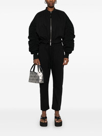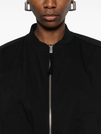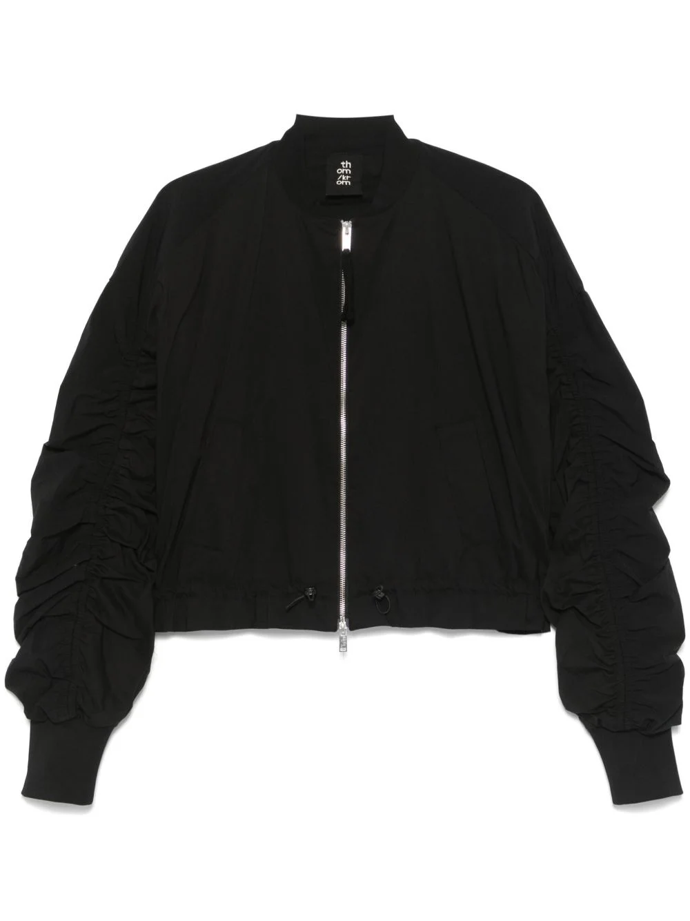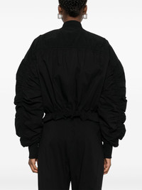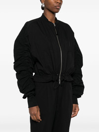 ruched bomber jacket Highlights - Black - Front two-way zip fastening - Two side welt pockets - Baseball collar - Long sleeves Imported Composition Outer: Cotton 60%, Polyamide 35%, Elastane 5% Lining: Nylon 92%, Elastane 8% SIZE & FIT Model measurements Height 5 ft 10 in(1.78 m) Bust/Chest 31.49 in(80 cm) Hips 37 in(94 cm) Waist 23.62 in(60 cm) FittingInformation Designed for a relaxed fit, this piece allows for comfort and movement when worn The internal drawstring at the hem allows for fitted preferences Made from a midweight stretch fabric, this piece offers elasticity and flexibility when worn