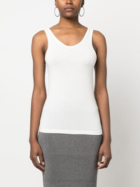 scoop- neck sleeveless top off-white scoop neck sleeveless straight hem Imported Composition Modal 47%, Cotton 47%, Spandex/Elastane 6% SIZE & FIT Model measurements Height 5 ft 11 in(1.8 m) Bust/Chest 31.49 in(80 cm) Hips 36.61 in(93 cm) Waist 24.4 in(62 cm) FittingInformation This piece fits true to size. We recommend you get your regular size Cut for a close fit Made with a mid-weight stretch fabric