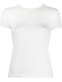 stretch crewneck T-shirt white stretch-cotton blend crew neck short sleeves straight hem Imported Composition Cotton 47%, Modal 47%, Spandex/Elastane 6% SIZE & FIT Model measurements Height 5 ft 11 in(1.8 m) Bust/Chest 31.1 in(79 cm) Hips 34.25 in(87 cm) Waist 22.83 in(58 cm) FittingInformation This piece fits true to size. We recommend you get your regular size Cut for a slim fit Made with a mid-weight stretch fabric