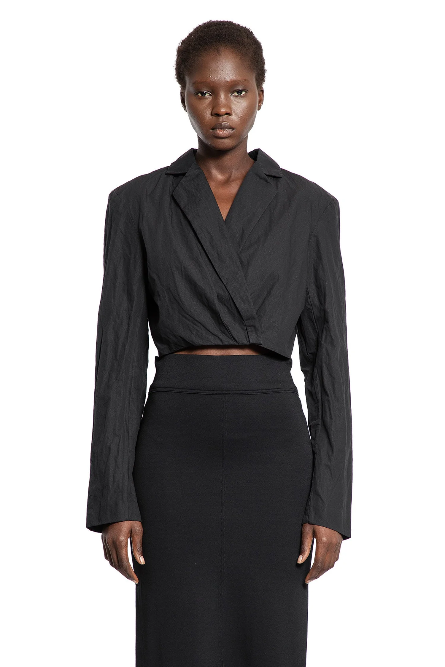 DESCRIPTION - Black - Washed cotton - Metallic effect - Drapped - Notch lapels - V-neck - Slim fit DETAILS - Made in: Portugal - Composition: 95% Cotton 5% Metallic Fiber - Model code: WB3 BLACK - Item ID: 9741105627478 SIZE & FIT Model wears size S Model Height 177 cm Bust 74 cm Waist 58 cm Hips 85 cm