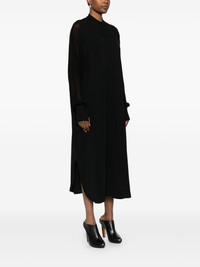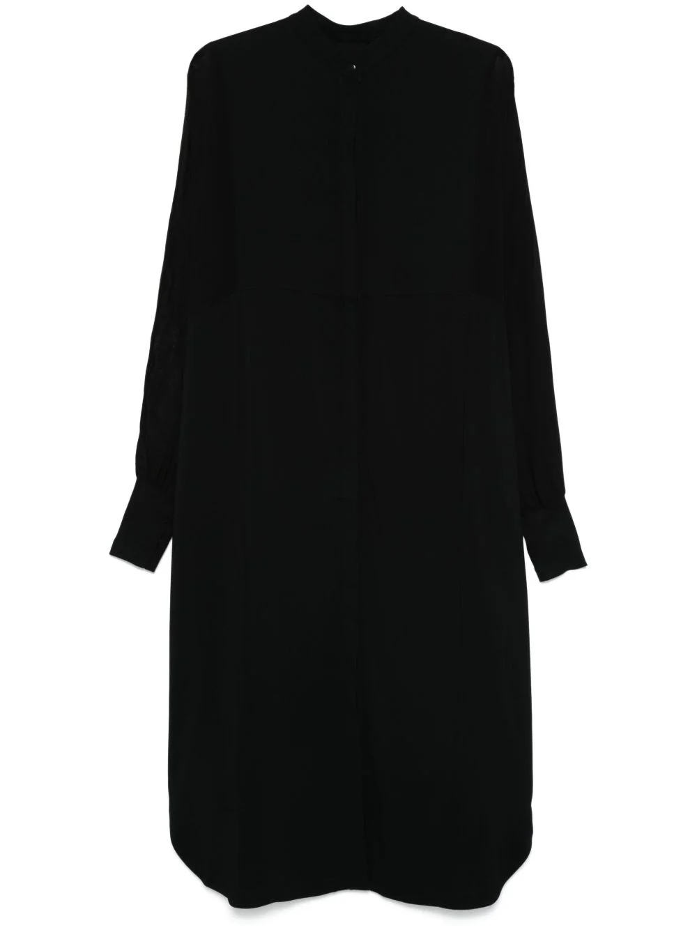 W D 30 midi dress Highlights - Black - Crepe texture - Semi-sheer panels - Concealed front button fastening - Band collar - Long sleeves with jersey cuffs - Side slits - Shift style - Straight hem - Mid-length Imported Composition Rayon 98%, Elastane 2% SIZE & FIT Model measurements Height 5 ft 11 in(1.8 m) Bust/Chest 31.49 in(80 cm) Hips 36.61 in(93 cm) Waist 24.4 in(62 cm) FittingInformation Designed to be unstructured, offering a loose fit throughout Made from a midweight stretch fabric, this piece offers elasticity and flexibility when worn