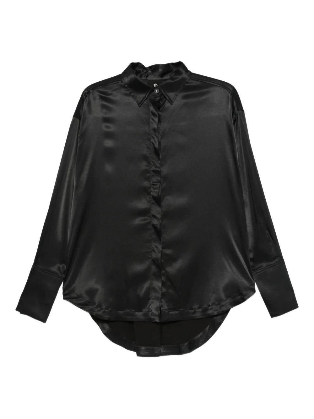 satin-finish shirt Highlights - Black - Satin finish - Button fastening - Long sleeves Imported Composition Rayon 51%, Viscose 47%, Elastane 2% Washing instructions Read Manufacturer Guidelines
