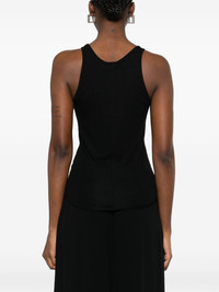 fine-ribbed tank top Highlights - Black - Crew neck - Sleeveless Imported Composition Viscose 94%, Elastane 6% SIZE & FIT Model measurements Height 5 ft 10 in(1.78 m) Bust/Chest 31.49 in(80 cm) Hips 37 in(94 cm) Waist 23.62 in(60 cm) FittingInformation Designed for a slim fit that sits just away from the body offering a close yet comfortable fit Made with a lightweight knit, this piece offers some stretch
