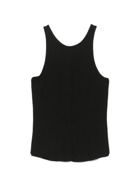 fine-ribbed tank top Highlights - Light beige - Crew neck - Sleeveless Imported Composition Viscose 94%, Elastane 6% SIZE & FIT Model measurements Height 5 ft 10 in(1.78 m) Bust/Chest 31.49 in(80 cm) Hips 37 in(94 cm) Waist 23.62 in(60 cm) FittingInformation Designed for a slim fit that sits just away from the body offering a close yet comfortable fit Made with a lightweight knit, this piece offers some stretch