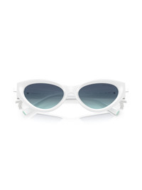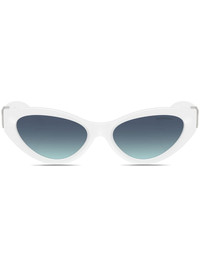 logo-plaque sunglasses Highlights - White - Cat-eye frame - Gradient lenses - Straight arms - Logo plaque at the arm - Curved tips - These glasses come with a protective case. Made in Italy Composition Plastic 100% SIZE & FIT Measurement Arm Length 5.51 in(14 cm) Bridge Width 0.66 in(1.7 cm) Lens Diameter 2.12 in(5.4 cm)
