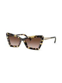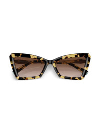 cat-eye frame sunglasses Highlights - Brown - Acetate - Brown tinted lenses - Cat-eye frame - Curved tips - Logo-engraved arm - These glasses come with a protective case. Made in United States Composition Acetate 100% SIZE & FIT Measurement Arm Length 5.51 in(14 cm) Bridge Width 0.62 in(1.6 cm) Lens Diameter 2.2 in(5.6 cm)
