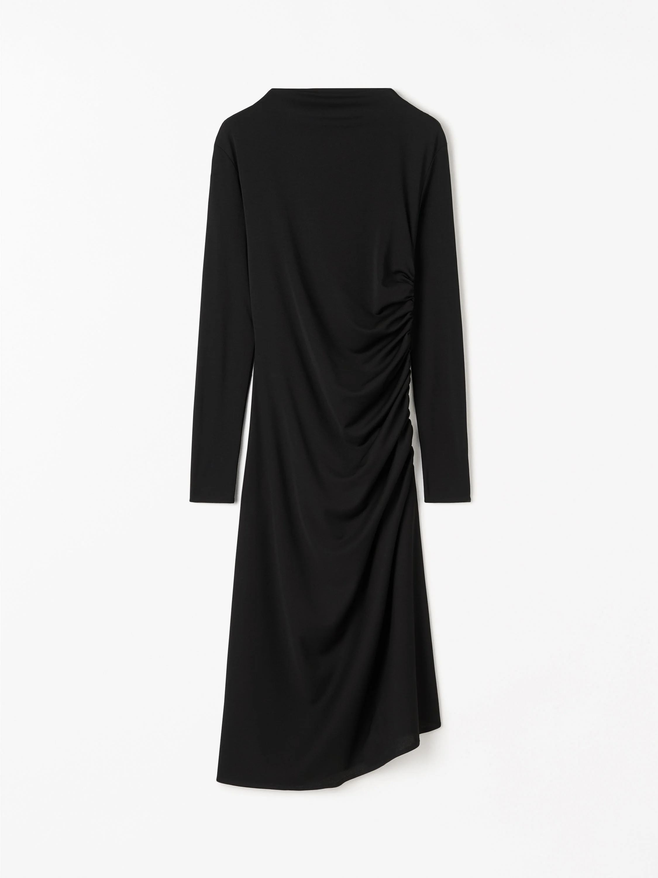 Aliz is a slim-fit sleeveless dress cut in drapey matte jersey. Featuring a feminine, below-knee-length silhouette, it has a ruched side-seam detail. The ruching creates a soft and flattering draping across the torso. The neckline is a low funnel structure and the wide shoulder line falls over the arm like a short cap sleeve. Unlined, the dress slips on without any closure. Product Details - 60% Viscose, 40% Polyester - Slim-fit sleeveless dress cut in drapey matte jersey - Below-knee-length silhouette, it has a ruched side-seam detail - The neckline is a low funnel structure and the wide shoulder line falls over the arm like a short cap sleeve - Unlined - Made in China - Model is 175 cm and wearing a size S - To complete the look, wear it with Zoka Pumps and Conci Bag - Art No.113247050
