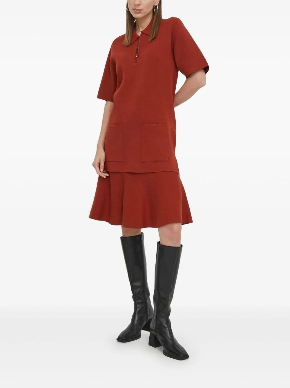 Ariia zip-front polo top Highlights - Rust orange - Half-zip fastening - Short sleeves - Knitted construction - Patch pockets Imported Composition EcoVero Viscose (LENZING) 66%, Polyester 26%, Elastane 8% Washing instructions Read Manufacturer Guidelines