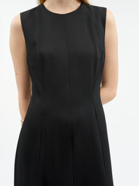 The Asta is a sculptural, yet effortlessly wearable dress. It features a clean, crew neckline that offers modern simplicity, while the silhouette transitions into a voluminous, slightly flared hem with a subtle mermaid shape, adding graceful movement. Designed with precision, the dress incorporates tailored dart seams that contour the body and enhance its architectural lines. The structured fabric allows the dress to drape beautifully while maintaining its shape, offering both elegance and ease. Product Details - 68% Wool, 32% Viscose - High round neckline - Flared A-line silhouette - Centre Back and front seam - Shaped seams at front and back - Unlined - Bust darts at front - Made in Romania - Model is 175 cm and wearing a size 36 - For a complete look, wear it with Cliniala Shoe and Vesperi Bag - Art No.113828050