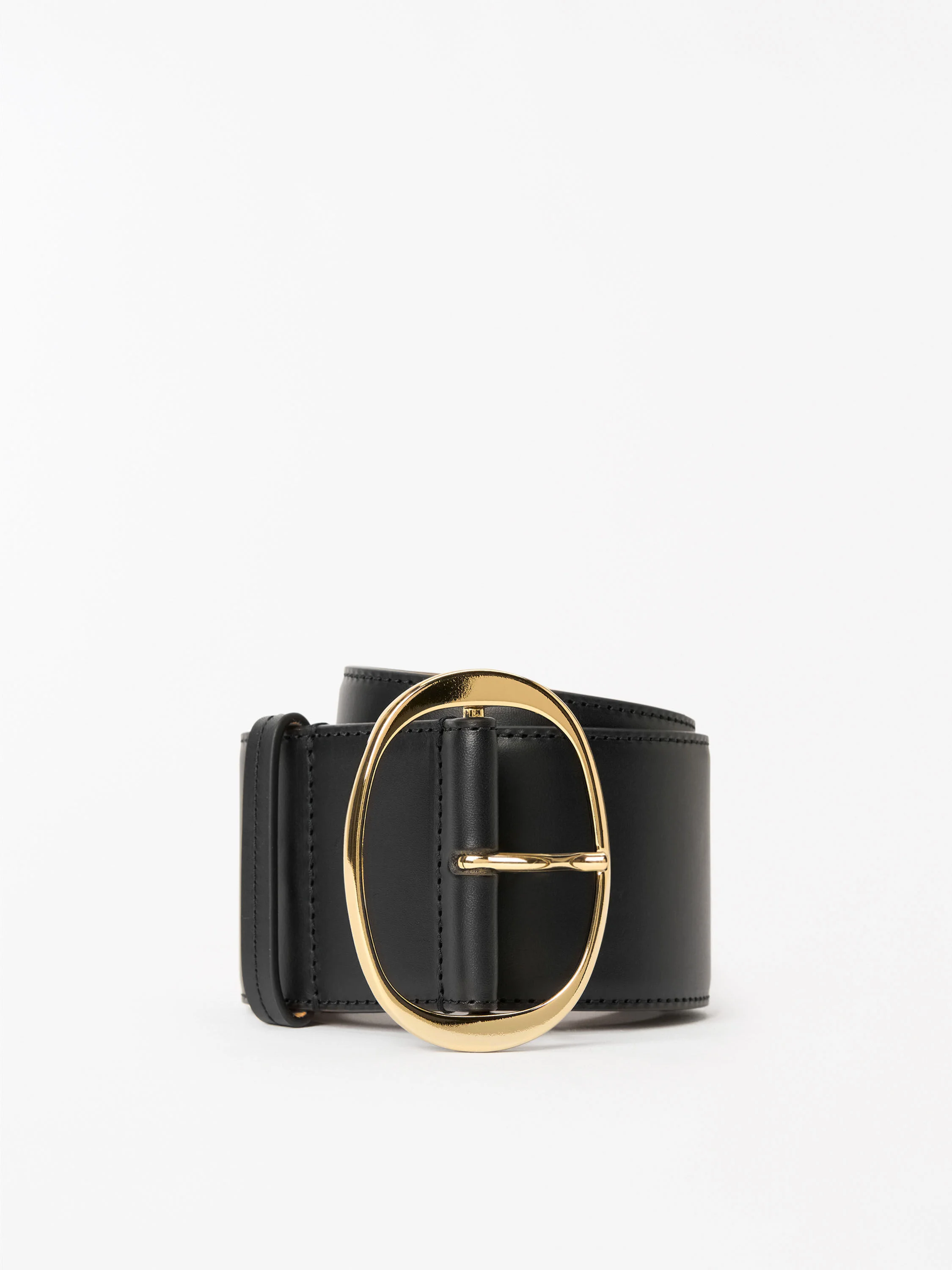 The Azra belt is made from qualitative Vachetta leather quality which has a higher shine. The belt is lined with leather. It is a wide belt which can be worn on the top of dress, shirts and blazers or on outerwear. The style was made with beautiful craftmanship such as the cross stitches at the back of the loops. The belt has a slight padding which makes the style elevated but still classic. The oversized buckle has a special shape and it comes with a light gold finishing. Product Details - 100% Cow Leather - Vachetta leather belt - Main material: 100% Cow leather - Buckle in shiny light gold finish - Features with a light padding - Made in Italy - Art No.113536050