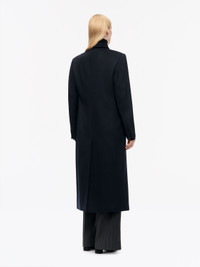 The Camden is an elegant peak lapel coat featuring hidden button closures for a sleek look. Designed with structured shoulders and a defined waistline to create a refined silhouette. Detailed with AMF stitching for a touch of luxury and kissing buttons at the sleeve vent. Includes a single vent at the centre back, welt pockets with flaps, and a fully lined interior for added comfort. Showcasing ToS's signature double buttonholes on the lapel, this timeless piece is crafted from a cashmere wool blend for impeccable quality and craftsmanship. Product Details - 70% Recycled Wool, 20% Polyamide, 7% Recycled Cashmere, 3% Other Fibres - Peak lapel coat - Hidden buttoning - Structured shoulders - Defined waistline - AMF stitching for a luxurious finish - Kissing buttons at sleeve vent - Single vent at centre back - Welt pockets with flaps - ToS signiture double buttonholes on lapel - Made in Romania - For a complete look, wear it with Aminha Pullover and Juli Trousers - Art No.114118284