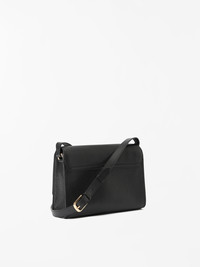 Product Details - 100% Calf Leather - Crossbody bag in grainy leather with smooth leather trim - Zipped pocket on front flap with magnetic closure - Single compartment featuring one zipped pocket and one open pocket - Adjustable shoulder strap - Polyester lining - Size: 16.5 x 25 x 7 cm - Made in India - Art No.109729050