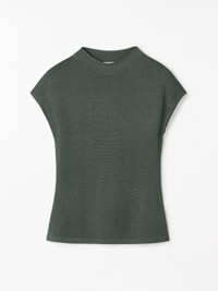 Cela is a sleeveless mock-neck sweater made in a festive jersey stitch lurex. The slim fit and tubular finishing at the mock neck and armholes create a finished look suitable for occasion dressing. Product Details - 75% Viscose, 25% Metallized Fibre - Shirt in fine-knit jersey stitch viscose lurex - Sleeveless with mock neck - Slim fit and hip length - Mock neck knit in single-layered jersey stitch - Tubular detail finishing at top of mock neck - Tubular finishing at armhole - Full-needle stitch knit at bottom hem - Made in China - Art No.11263431E