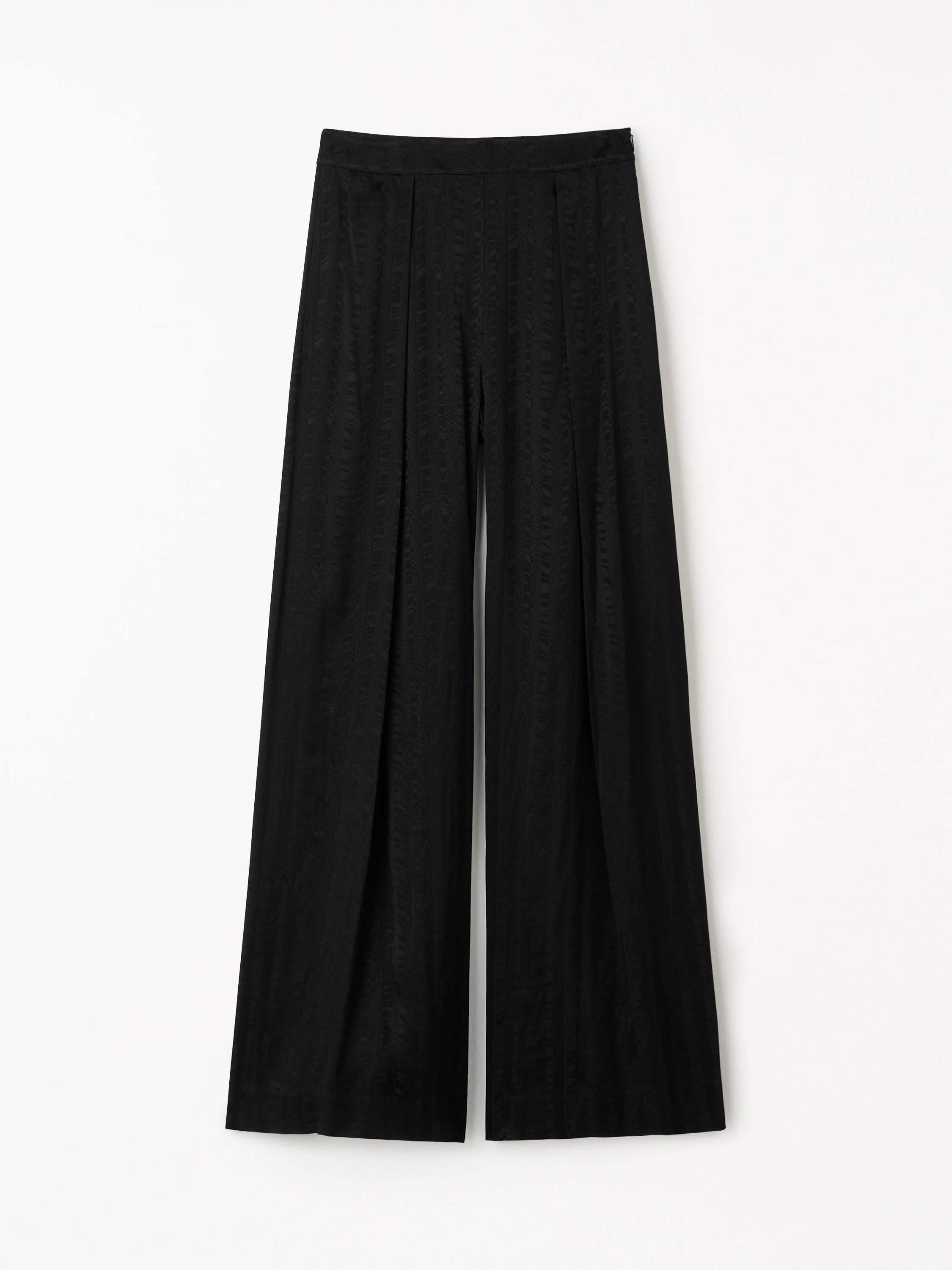 Cora is our new trousers in a relaxed loose fit with a high waist with waistband. They are designed in a drapy printed 100% viscose fabric featuring wide legs with pleats at front. Invisible zipper and hook&eye closure at side with welt pocket at back. They also have a folded high bottom hem. Product Details - 100% Viscose - Trousers in a drapy printed fabric - Relaxed loose fit - Wide leg with pleats at front - Fitted high waist with waistband - Invisible zipper and hook & eye closure at side - Welt pocket at back - Folded high bottom hem - Made in China - Model is 177 cm and wearing a size 36 - For a complete look, wear it with Amalia Shirt and Vesperi Handbag - Art No.113708050