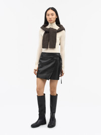 Darla is our new mini skirt, designed in 100% lamb leather. It features a regular-fit with an adjustable strap at the waist for size adjustment. Product Details - 100% Lamb Leather - Regular-Fit - Mini length - Strap at the waist - Belt loop added to side seam - Made in Turkey - Model is 177 cm and wearing a size 36 - To complete the look, wear it with Aminha Sweater and Abie Boots - Art No.113424050