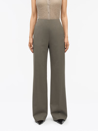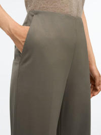 Classic Eedit trousers designed with a mid-waist and straight leg. The Eedit have slanted pockets at the front and welt pockets at the back, finishing with a pressed crease. The trousers have no waistband and feature a zip opening added to the side seam for a minimal look. Product Details - 54% Recycled Polyester, 44% Wool, 2% Elastane - Side closure trouser for a flat and flattering front cut in a wool blend - Full length - Slanted pockets at front - Single welt pockets at back - Finished with pressed crease - Made in Romania - Model is 177 cm and wearing a size 36 - For a complete look, wear it with Rose RMS RWS Vest and Eliwiraa Jacket and Zoka Pumps - Art No.1122131Q5