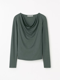 This long sleeve version of the Elois top offers a sleek, modern silhouette with its slim-fit shape and refined detailing. Featuring a distinctive cowled neckline that elegantly folds to one side, it adds a touch of asymmetrical sophistication to the design. The bodice is fully doubled with the shell fabric, ensuring a smooth, streamlined fit and a clean, polished finish. This thoughtful construction enhances comfort while maintaining the garment’s elegant drape and structure. Product Details - 100% Lyocell (TENCEL (TM)) - Long sleeve version of Elois - Slim-fit shape with cowled neckline that folds to one side - Bodice is doubled with a shell fabric for a smooth fit and clean finish - Made in Portugal - Model is 177 cm and wearing a size S - For a complete look, wear it with Hedvi Trousers - Art No.11324631E