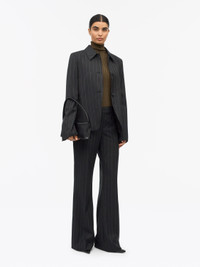 The Eloise T is tailored in a unique, in-house-developed pinstripe fabric. It features a refined bal collar and a three-button front closure for a structured yet effortless silhouette. Thoughtfully designed details include discreet inseam side zip pockets and a subtle slit at the sleeve hem, adding a modern edge. Fully lined for a smooth and comfortable fit, this blazer is crafted from 100% premium wool, offering both sophistication and timeless appeal. Product Details - 100% Wool - A modern blazer cut in a in-house developed pinstripe - Bal collar with 3 buttons for closure - Inseam side zip pockets - Slit at sleeve hem - Fully lined - Made in Romania - Model is 177 cm and wearing a size 36 - For a complete look, wear it with Isabella Top and Eloise T Jacket - Art No.11374702C
