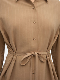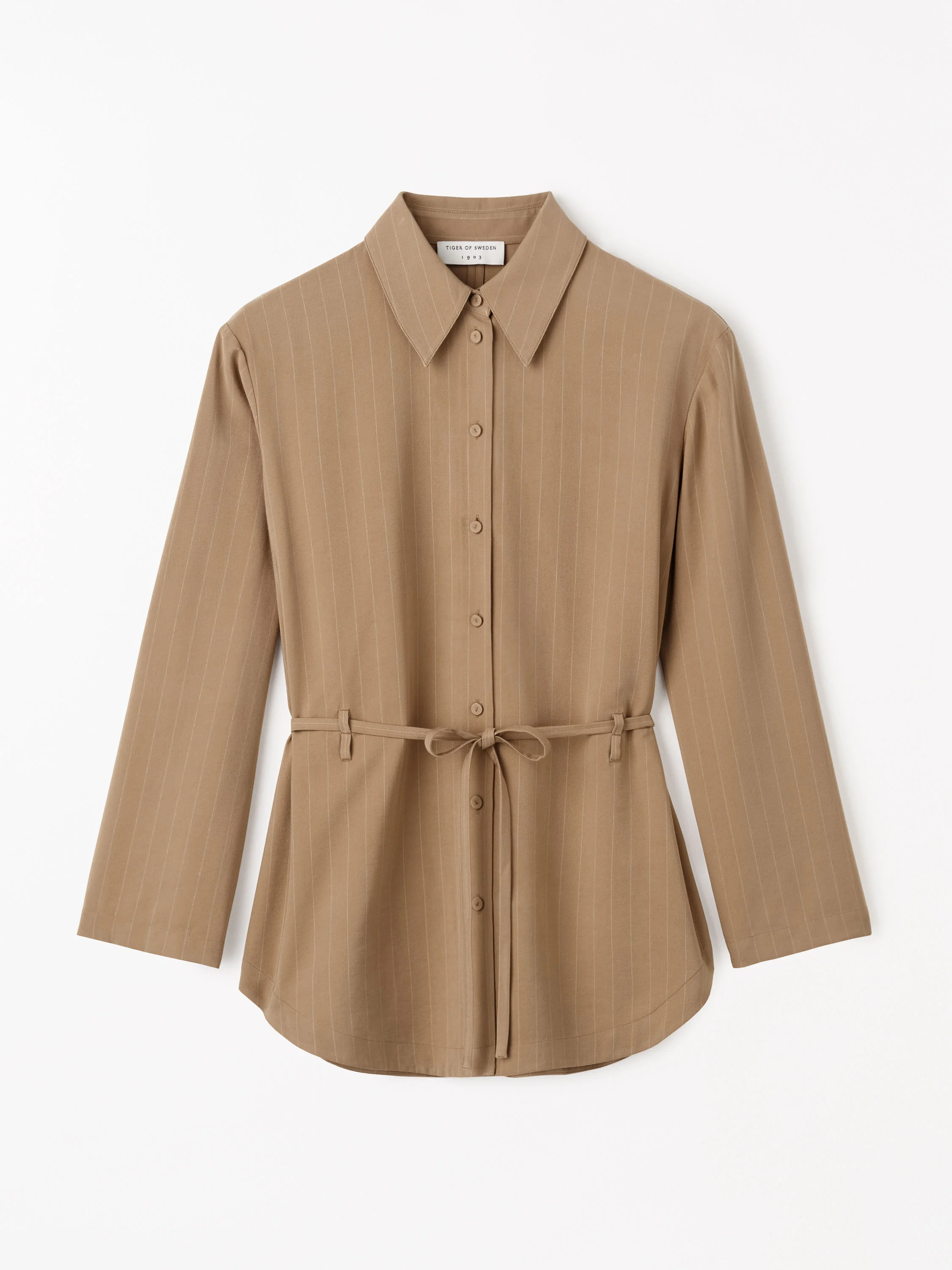 The Felix shirt blouse is crafted from a tailored, drapey midweight fabric that offers both structure and fluidity. Designed with a relaxed fit, it features a pointed collar and a front French placket with fabric-covered buttons for a refined touch. The cropped sleeves have a subtle flared shape, adding a hint of movement to the silhouette. At the front waist, attached tie straps and belt loops allow for customisable styling. The curved hem is slightly longer at the back, creating a flattering and contemporary finish. Product Details - 91% Viscose (LENZING (TM) ECOVERO (TM) ), 8% Polyamide, 1% P olyester - Shirt blouse in a tailored drapy midweight fabric - Relaxed fit - Pointed collar - French placket at front - Fabric covered button closure - Cropped sleeves with slightly flared shape - Attached tie straps and beltloops at front waist - Curved bottom hem, slightly longer at back - Made in China - Model is 177 cm and wearing a size 36 - For a complete look, wear it with Maggie Moritz Jeans - Art No.1137141Z4