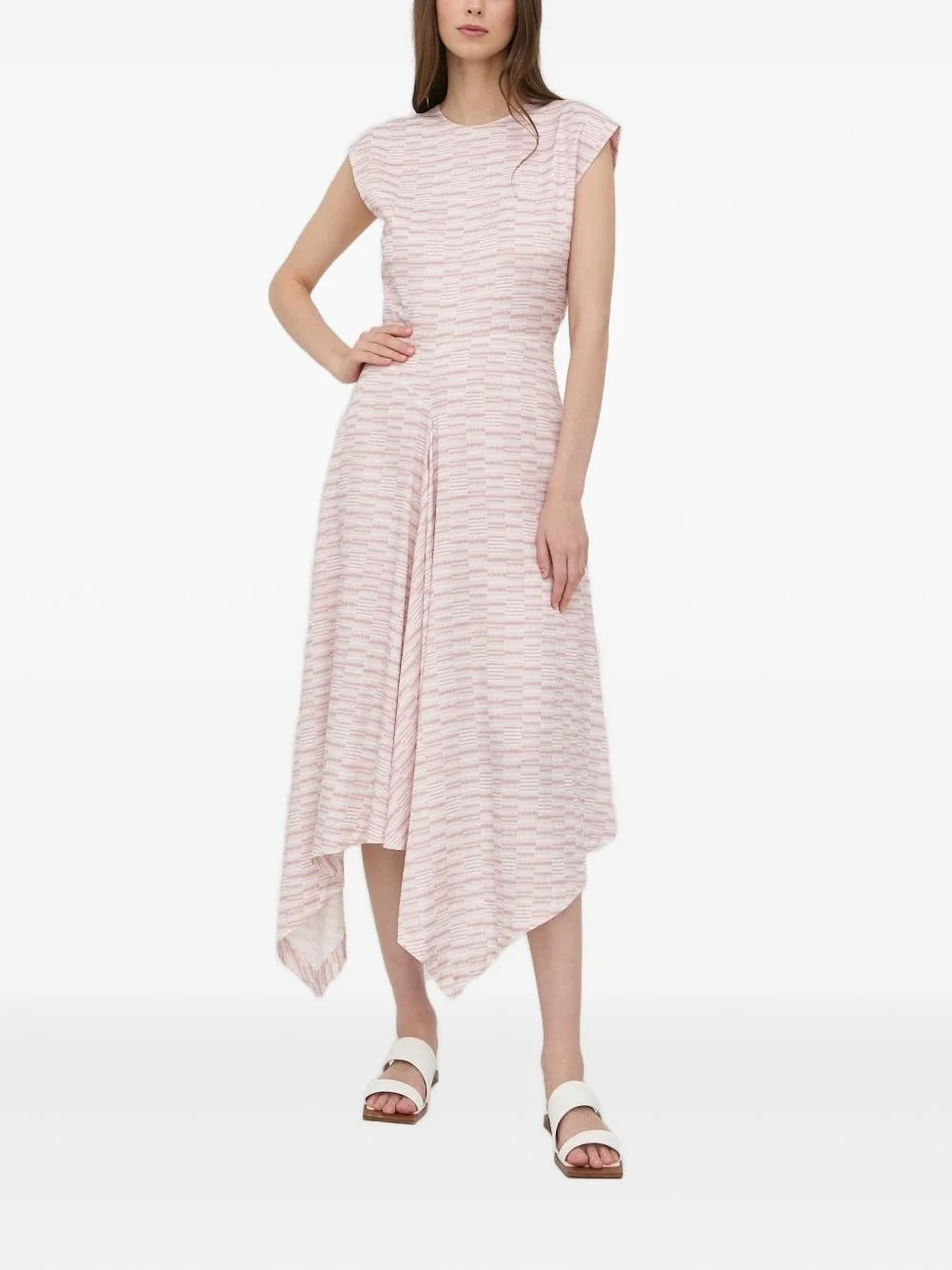 geometric-pattern asymmetric-hem dress Highlights - Pink - Cap sleeves - Geometric pattern - V-shaped back - Asymmetric hemline Imported Composition Outer: Cupro 70%, Cotton 30% Lining: Viscose 100% Washing instructions Read Manufacturer Guidelines
