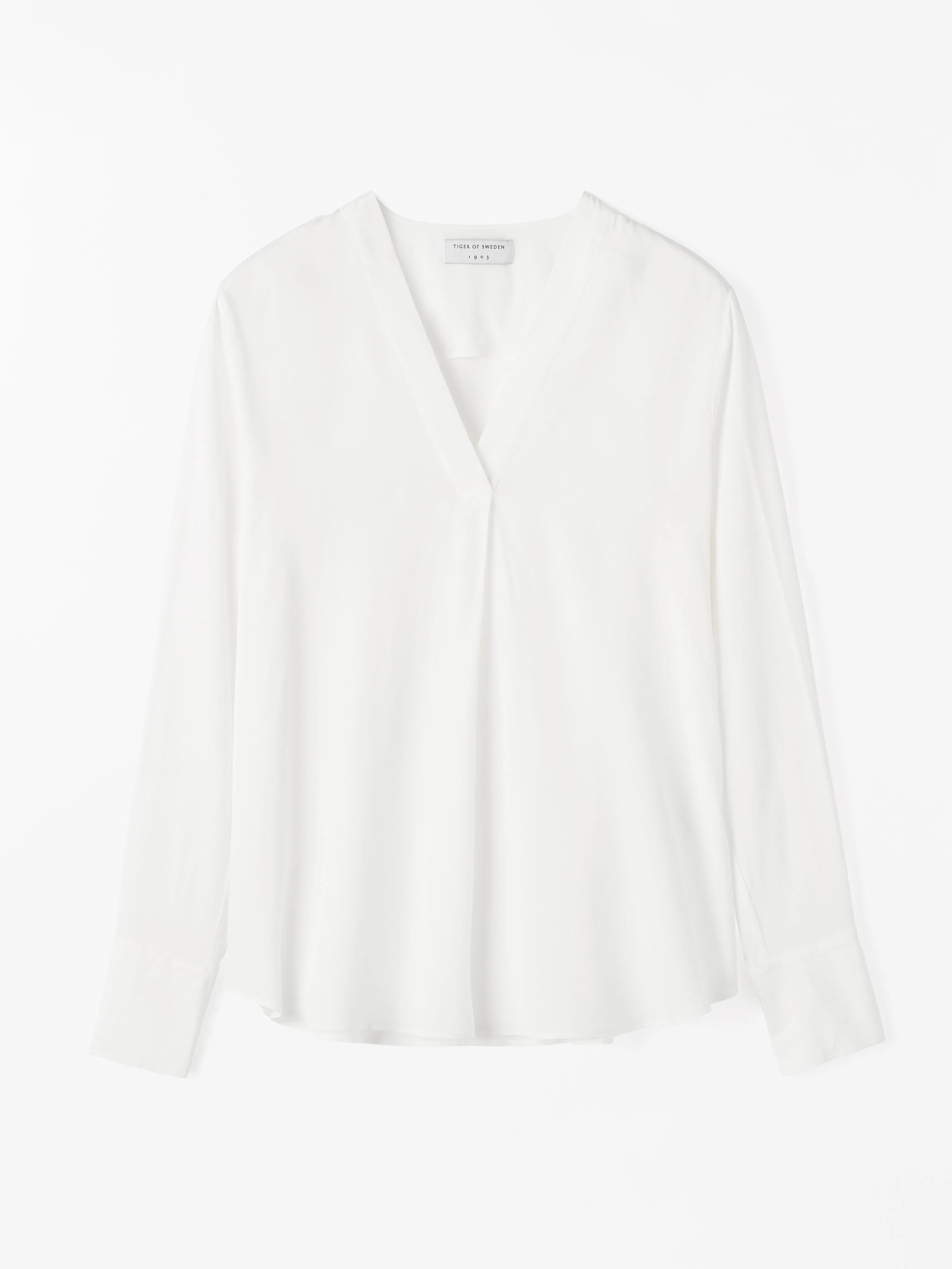 Product Details - 75% Acetate, 25% Organic Silk - Regular Fit - Shirt in silk blend - Hip length - Long sleeves - V-neck with placket - Pleat at front - Cuffs with button closure - Double yoke - Made in Romania - Model is 179 cm and wearing a size 36 - Art No.109799090