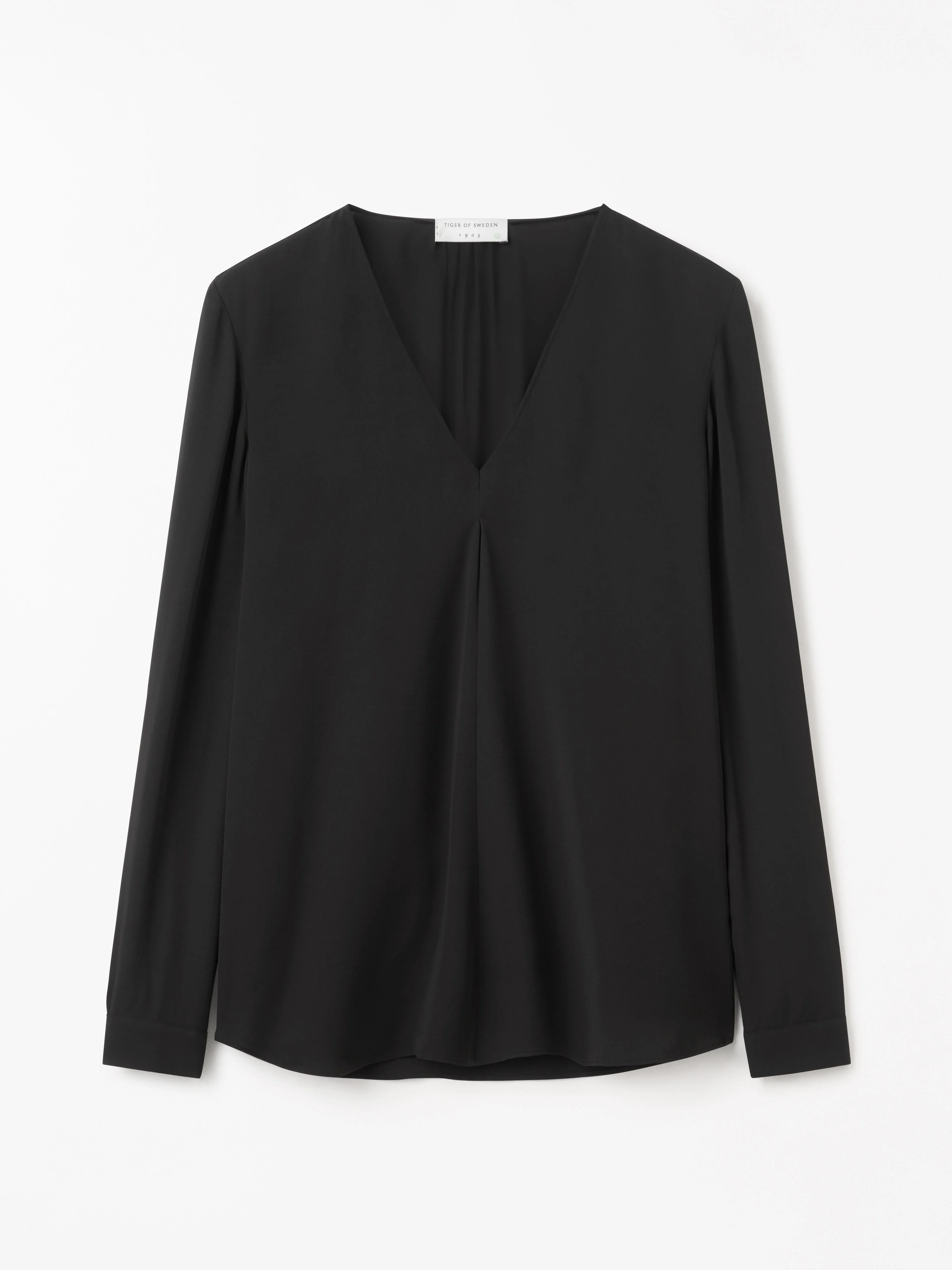 A classic regular-fit blouse featuring a clean V-neckline and a minimalist design with no plackets. The silhouette falls straight from the waist down, complemented by tailored cuffs for a polished touch. A front seam adds subtle structure, while French seams at the shoulders provide a refined, high-quality finish. Product Details - 100% Viscose - Classic shirt - Regular fit blouse - V - neck - No plackets - Cuffs - Straight from the waist and down - Seam in the front - French seams on shoulders - Made in China - Model is 177 cm and wearing a size 36 - For a complete look, wear it with Irit Trousers - Art No.114308050