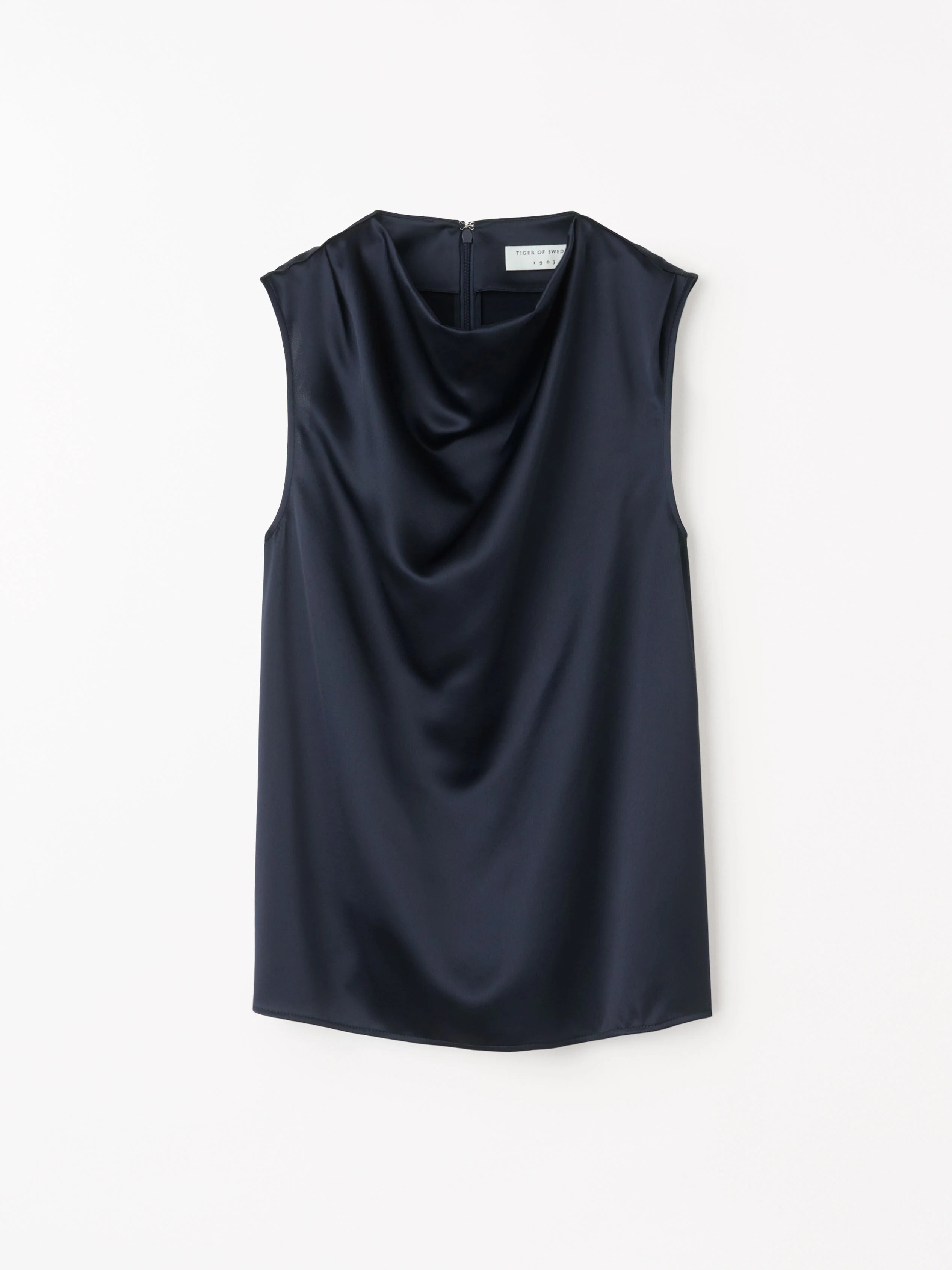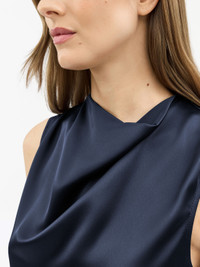 Lian is an elegant satin evening top with drapey high neck with engineered pleats. The gentle drape effect on the bodice creates well-balanced volumes while also bringing comfort to the wearer. Slits on the side bottom brings extra comfort with edge. Product Details - 75% Acetate, 25% Polyester - Slim flare fit - Drapey high neck - Slits on the side bottom - Straight hem - Pleats on neck and drape effect on the bodice - Made in China - Art No.1138772Q4