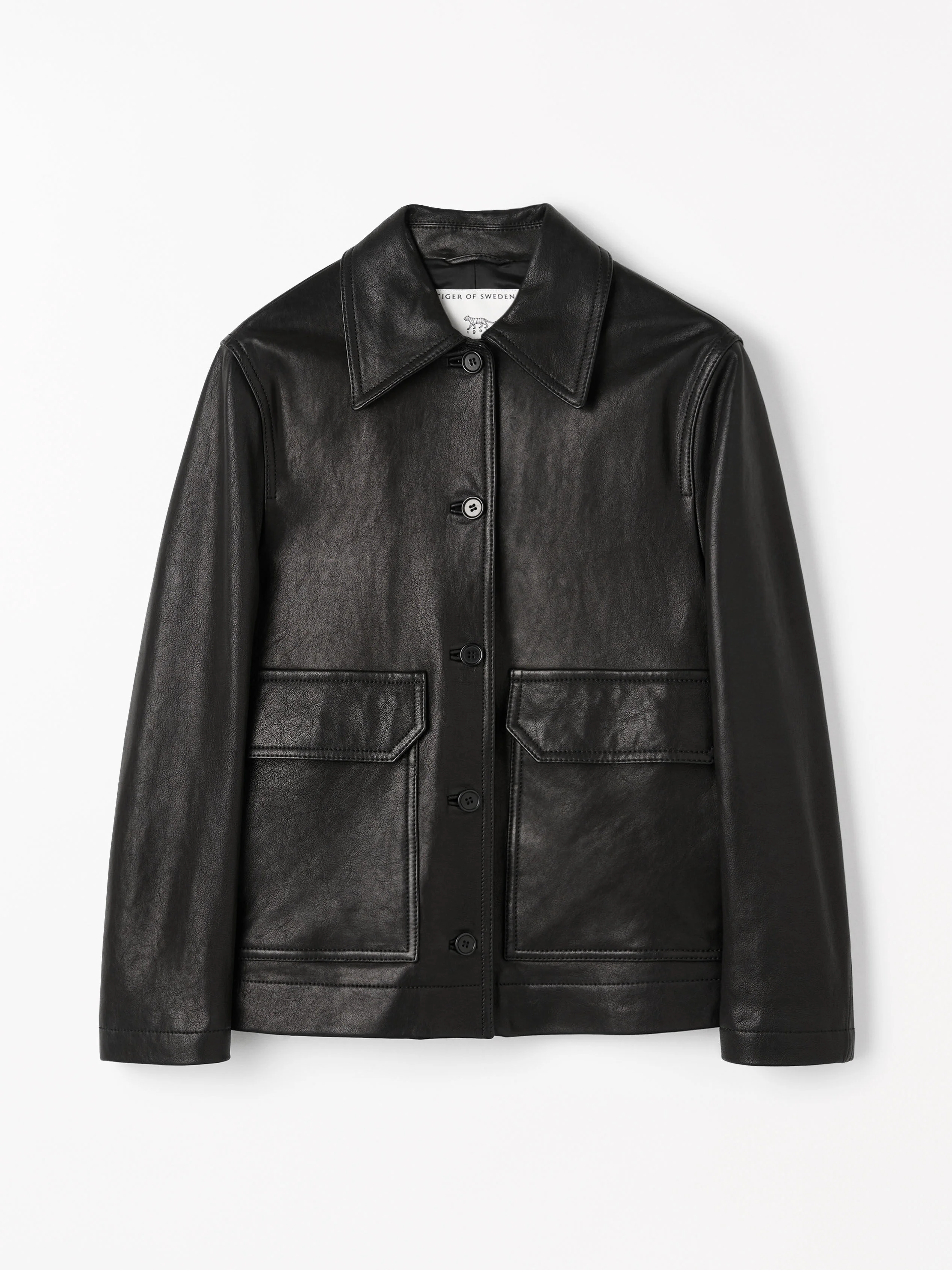 Loanna is a stylish leather jacket designed for everyday wear. Combining casual charm with elegant sophistication, this jacket is a versatile wardrobe staple. It features convenient patch pockets, accessible from both the top and side, ensuring maximum functionality. The wide collar adds a touch of classic appeal, while twin-needle topstitching completes the look with a subtle, casual finish. Product Details - 100% Lamb Leather - Stylish leather jacket - Patch pockets, accessible from both the top and side - Wide collar with twin-needle topstitching - Button closure at centre front - Fully lined - Made in Turkey - Model is 175 cm and wearing a size 36 - To complete the look, wear it with Darla Skirt and Abie Boots - Art No.113474050