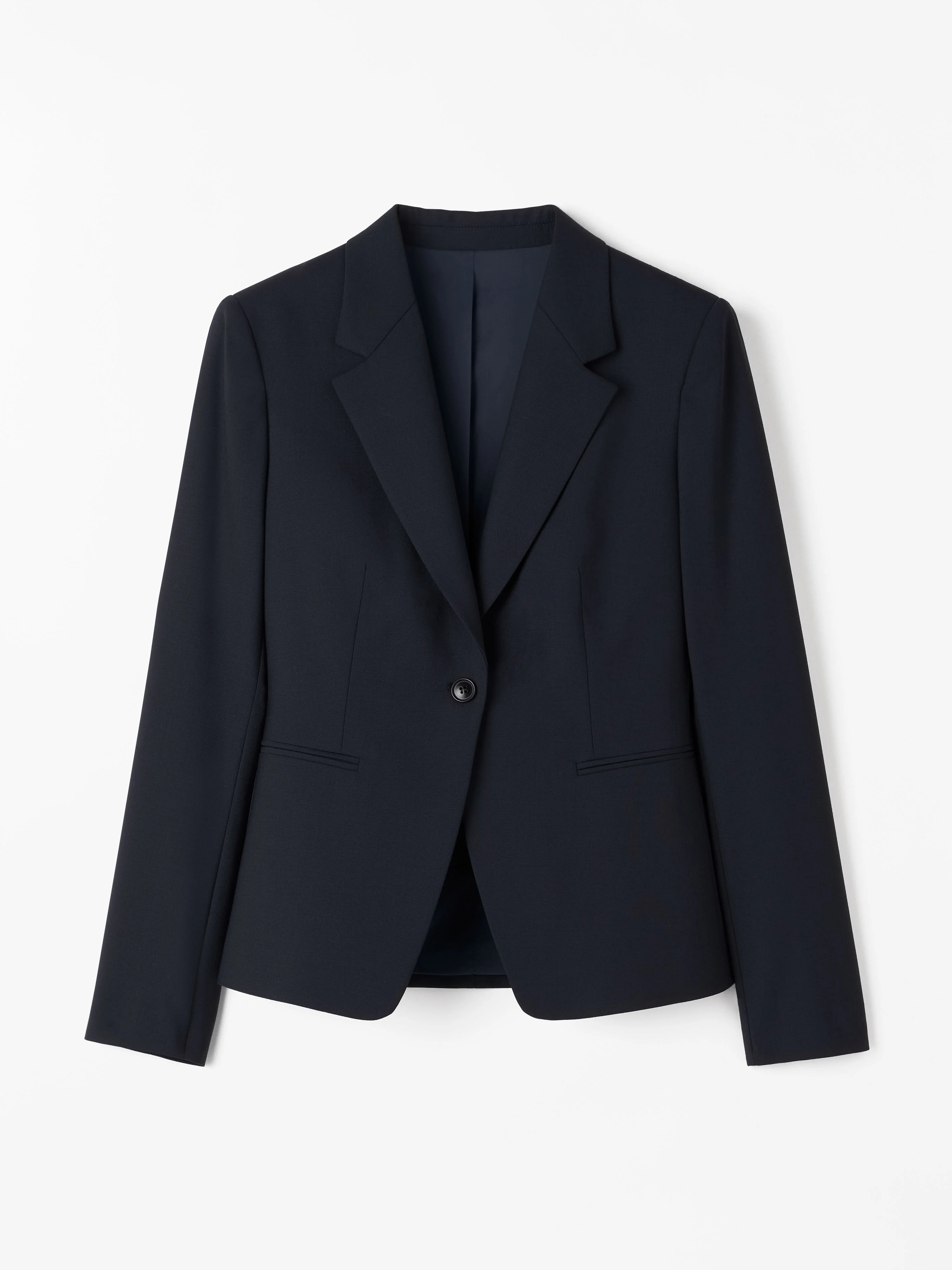 Product Details - 54% Recycled Polyester, 44% Wool, 2% Elastane - Slim Fit - Suit jacket in recycled polyester-wool blend in plain weave - Hip length - Wrinkle resistant, packable fabric - Notch lapel - Single-button closure - Double welt pockets at front - Felt underneath collar - Fully lined with stretch lining - Made in Romania - Model is 179 cm and wearing a size 36 - Art No.109794284