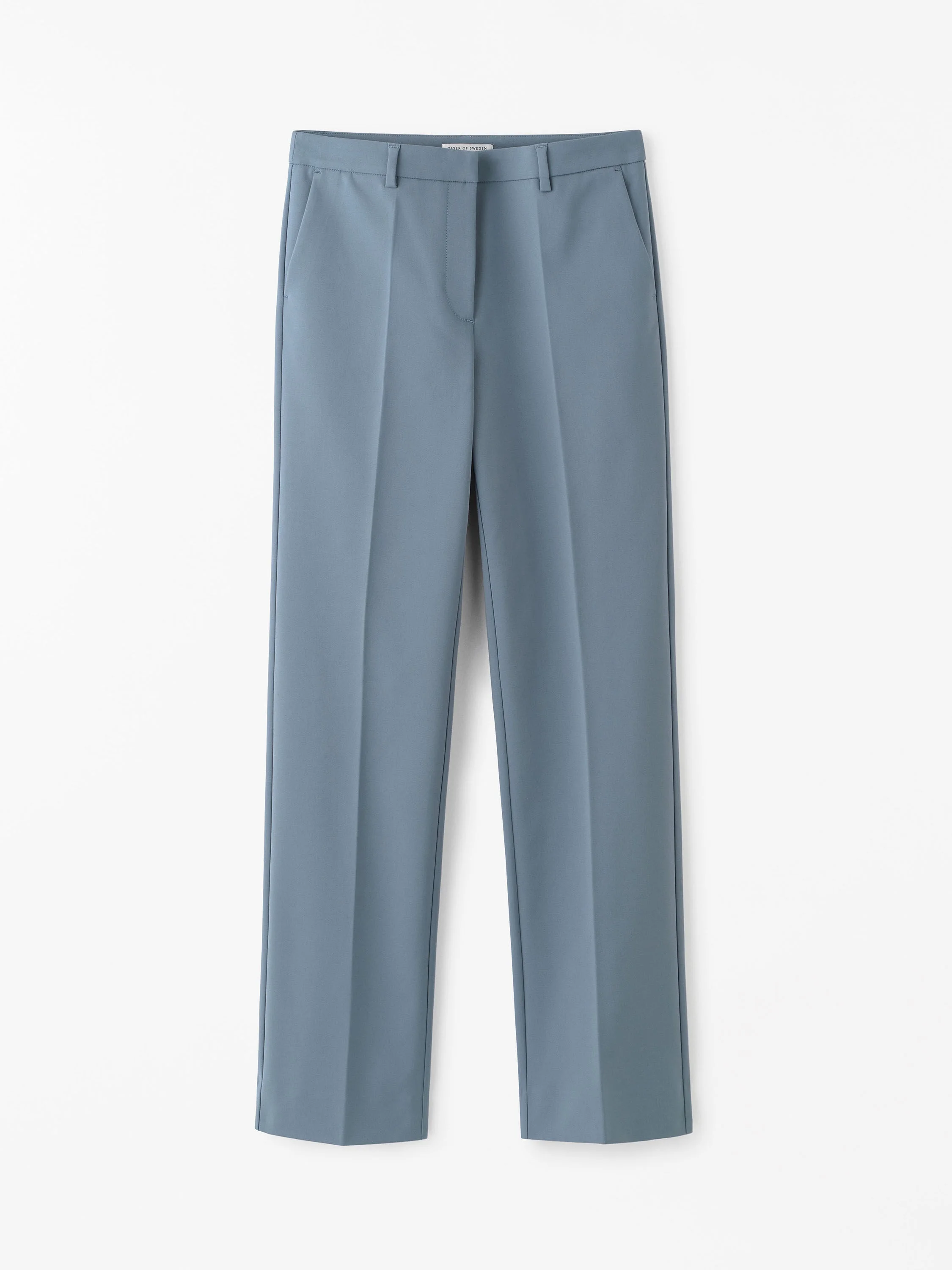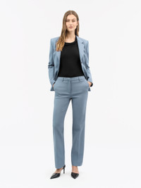 The Noowa trousers are crafted from a cotton stretch blend, offering a slim fit and straight leg, mid waist for a comfortable, yet stylish look. They are full length and feature a zip, hook, and bar closure. The front slanted pockets and single welt pockets at the back add functionality, while the blind-stitched bottom hem provides a clean finish. Product Details - 52% Cotton Organic, 45% Polyester, 3% Elastane - Trousers in cotton stretch blend - Mid-waist silhouette - Full length - Zip, hook and bar closure - Slanted pockets at front - Single welt pockets at back - Blind-stitched bottom hem - Made in Romania - Model is 178 cm and wearing a size 38 - For a complete suit look, wear it with Ylja Jacket and Jela Top - Art No.1122022V2