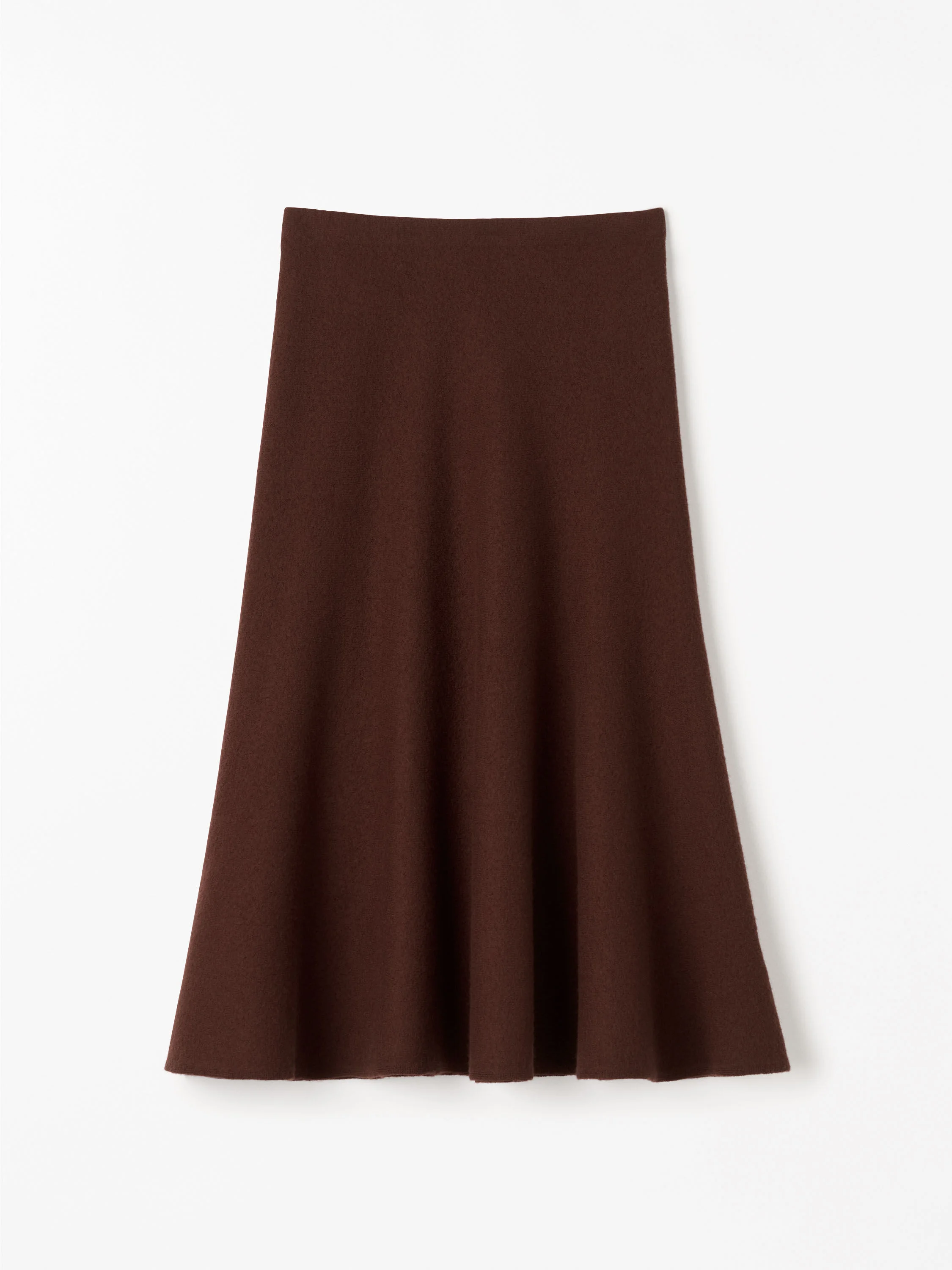 The Sian skirt is crafted from 100% boiled merino wool, offering a structured yet comfortable feel. Knitted in a smooth jersey stitch, it features a slim fit through the hips that gently flares out at the hem for a flattering silhouette. Designed to fall at calf length, this unlined skirt is finished with an elastic waistband for ease of wear and a clean, minimalist look. The wool in this product is certified by the Responsible Wool Standard. Product Details - 100% Wool - Merino - Knitted in 100% Boiled merino wool - Unlined - Calf length - Slim fit with flared hem - Elastic waistband - Knitted in a jersey stitch - Responsible Wool Standard - Made in China - Model is 175 cm and wearing a size S - To complete the look, wear it with Dolore Sweater and Zoka Pumps - Art No.11335712P